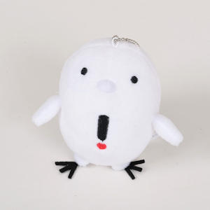 大きさは縦約9センチの手乗りサイズ。ころんとした愛らしいフォルムで、本物の小鳥のようなふわふわの手触りです。付け外しに便利なボールチェーン付き。