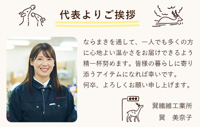 『ならまき』を展開しております、巽繊維工業所の巽でございます。