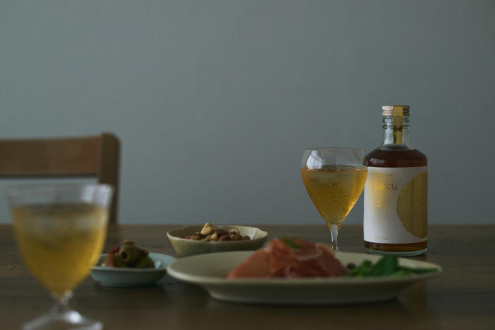 - sakuは、奈良の老舗酢蔵ミヅホによる米酢をベースとした新たなドリンクです。吉野杉の木桶でじっくりと発酵させた米酢は、まろやかで深みのある味わいが特徴。その米酢にフルーツやスパイスなどを組み合わせ、食事とのペアリングを楽しめる味わいをソムリエと共に開発しました。食事のひとときからリラックスタイムまで、心地よく花やぐ時間をお届けします。