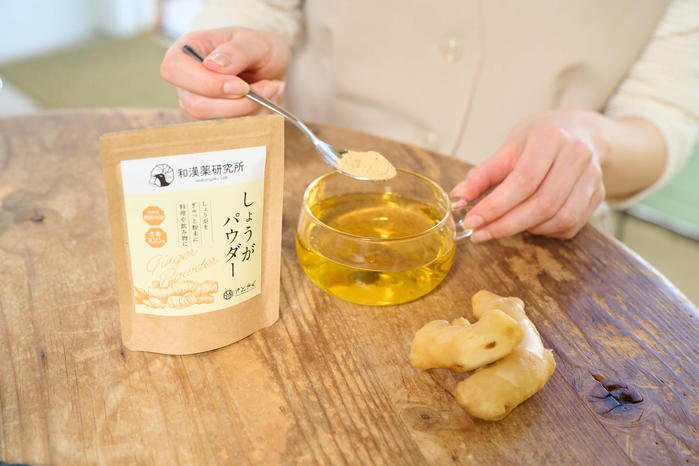 - 奈良県にある和漢薬研究所の農園で栽培したしょうがを新鮮なうちにぎゅっと粉末にしました。